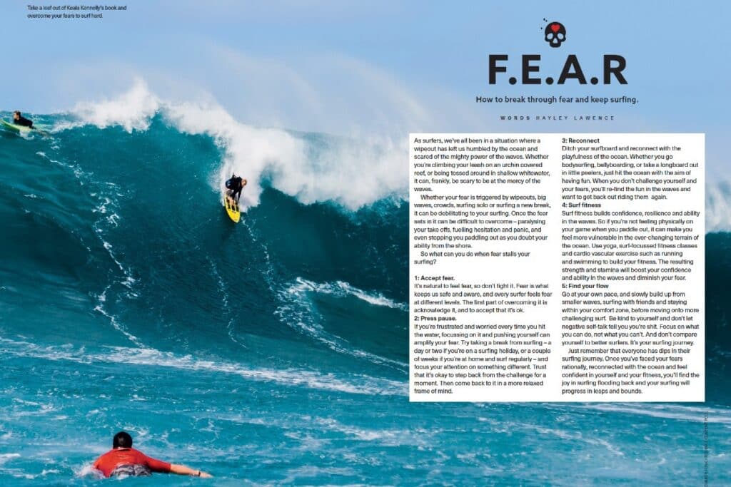Fear. As surfers we’ve all felt it. Standing on the shoreline looking out at the waves. Grovelling under a set. Being churned in the whitewater, not knowing which was is up.