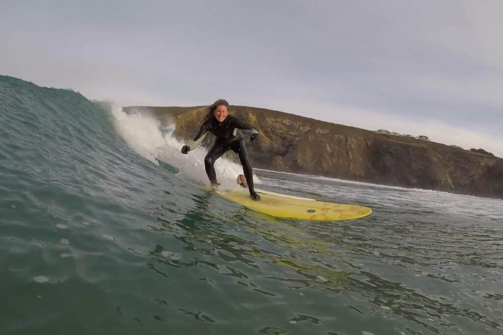 “Surfing is physically demanding, builds strength and mentally it’s refreshing as it focuses your mind on that one goal of getting to your feet – so all other worries, commitments, responsibilities are forgotten for that time that you’re in the sea. I come out buzzing but also feeling nicely wound down, relaxed and content,” says Surf Mum Briony Anscombe. Adding that: “Learning to surf has been a scary, often frustrating but hugely rewarding experience. After many wipe outs and near quitting, the sense of total freedom and exhilaration when I finally managed to get to my feet was totally liberating and addictive. It gave me a massive sense of achievement and is something I hope to continue to improve on throughout my life.”