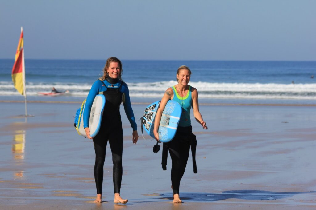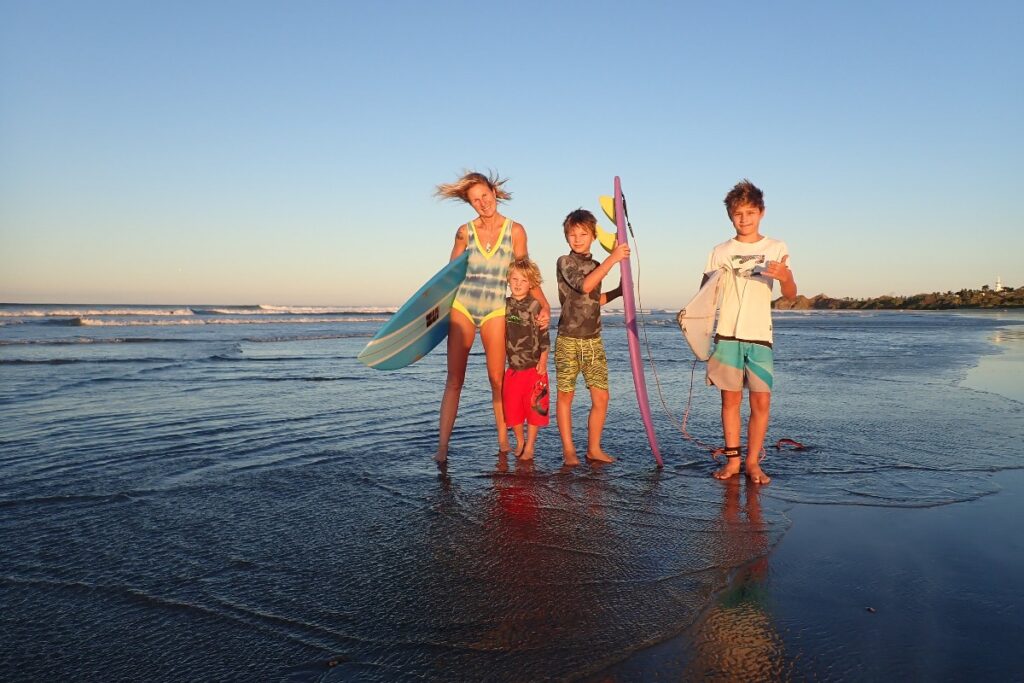 It’s not just in the water that we reap the benefits from surfing. Beyond the ocean, we can transfer the skills we learn when we’re surfing into many areas of our lives as mums: The courage to paddle out. The stamina to keep going when we’re exhausted. The strength to get up again and again after wipeouts. The patience and timing to catch the waves. Ultimately, surfing can benefit our wellbeing and also help us to ride the ups and downs of parenthood.