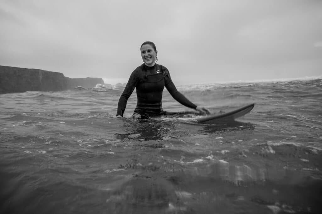 Author Hayley Spurway enjoying mindfulness in the ocean. Photo by Nathan Benham @dawnpatrolphotography